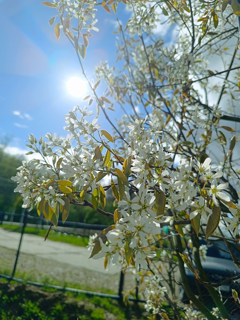 Ирга Ламарка в форме арки — это живой декоративный акцент, который соединяет в себе элегантность, сезонную выразительность и природную пластичность. Весной арка покрывается облаком белых цветков, летом — усыпана съедобными сине-черными ягодами, а осенью пылает огненными оттенками оранжевого и красного.