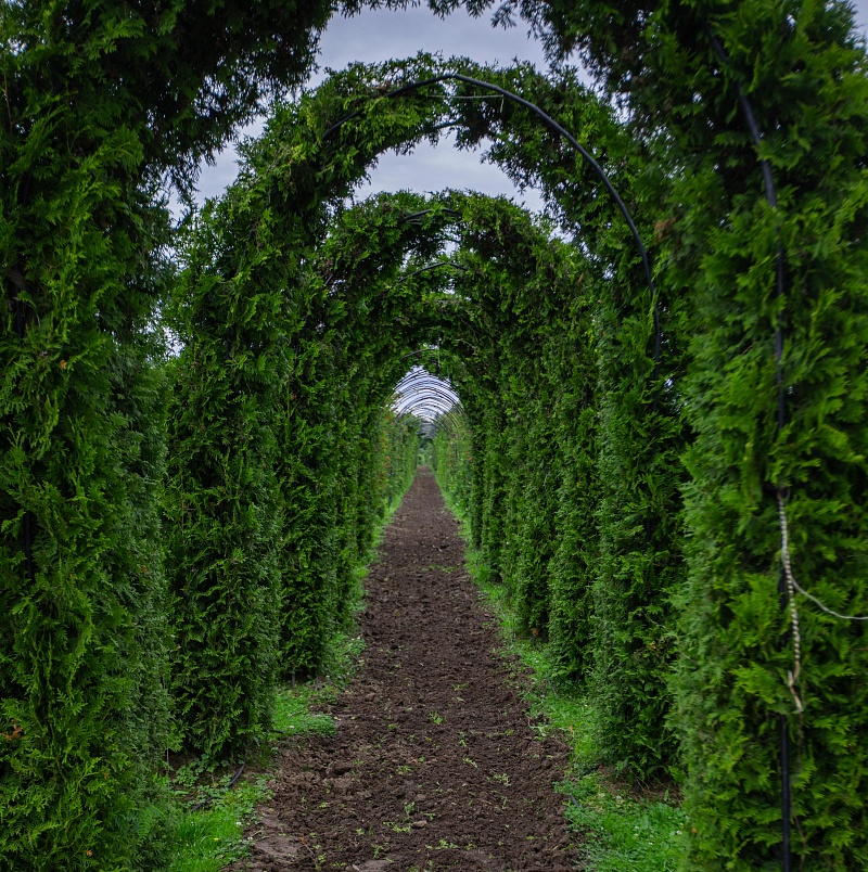 Это великолепное решение для тех, кто хочет добавить в свой ландшафт элемент элегантности и функциональности. Густая крона и яркий цвет хвои позволяют создавать пышные, эффектные, а главное долговечные зеленые арки. Такие арки позволяют создавать зеленые тоннели или аллеи, которые добавляют ландшафту глубину и структуру. А также арка из туи Брабант прекрасно подходит для оформления входных зон, создавая камерную и приветливую атмосферу.