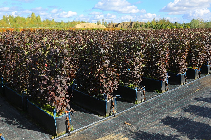 Пузыреплодник калинолистный 'Andrea' – декоративный лиственный кустарник, который отличается эффектной пурпурно-красной листвой и элегантными формами. В начале лета цветет белыми или розоватыми цветками, что добавляет дополнительную декоративность. Осенью на кустарнике появляются красноватые плоды, которые сохраняются до зимы и привлекают внимание своим необычным видом.