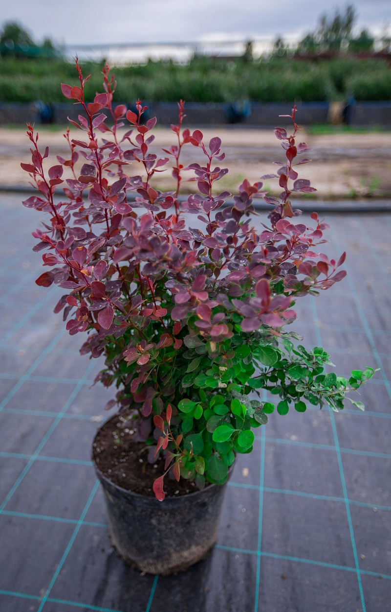 "Суперба" (Superba) — эффектный сорт оттавского барбариса, отличающийся высокой декоративностью и насыщенным пурпурно-красным оттенком листвы. Весной и летом он формирует плотный, яркий куст, а к осени расцветает в огненно-красных тонах, добавляя саду драматичности и глубины.